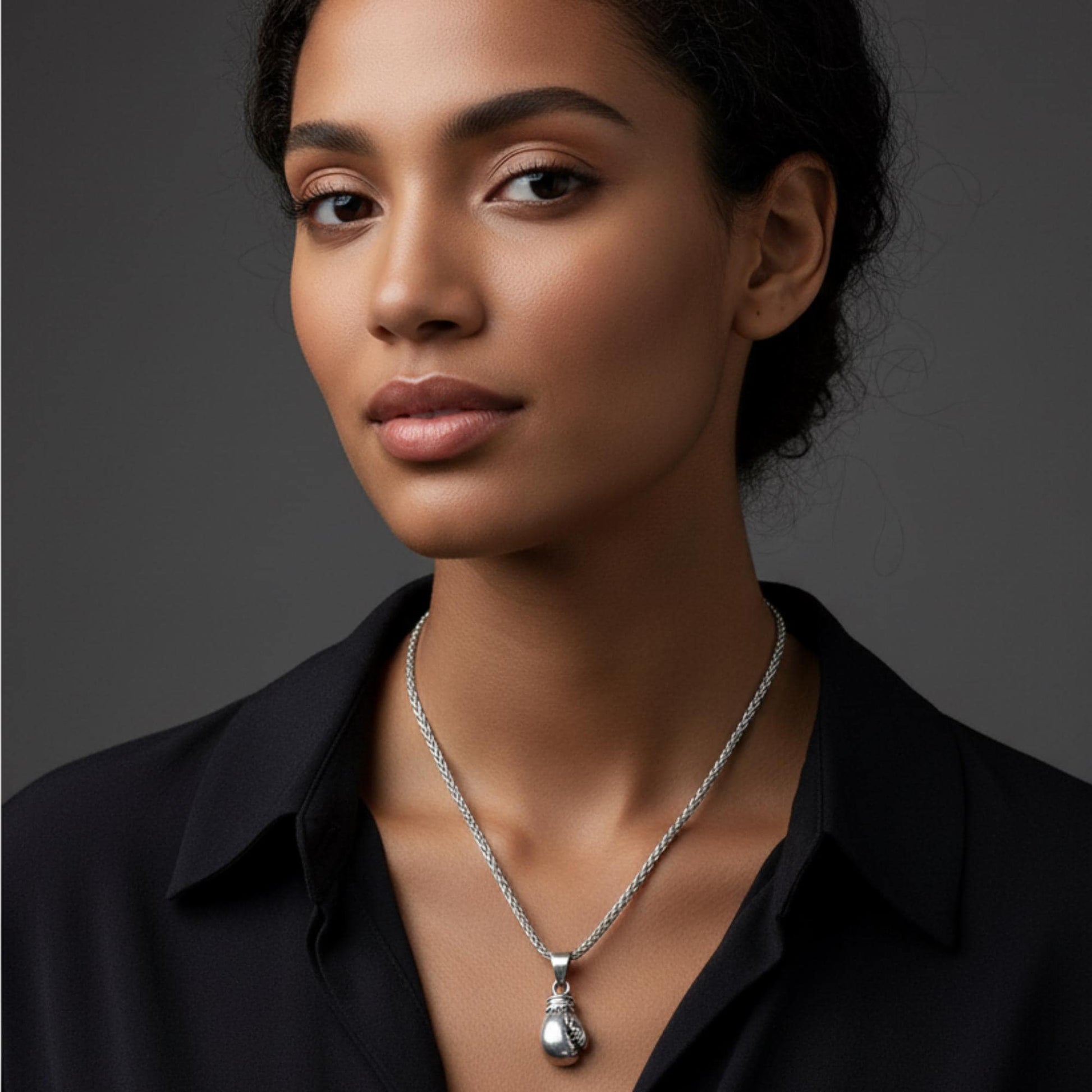 Unisex Heavy Silver Boxing Glove Pendant, Silver Boxing Charm, Silver Kickboxing Charm, Fighter Necklace, Gift for Boyfriend, Cancer Survive
