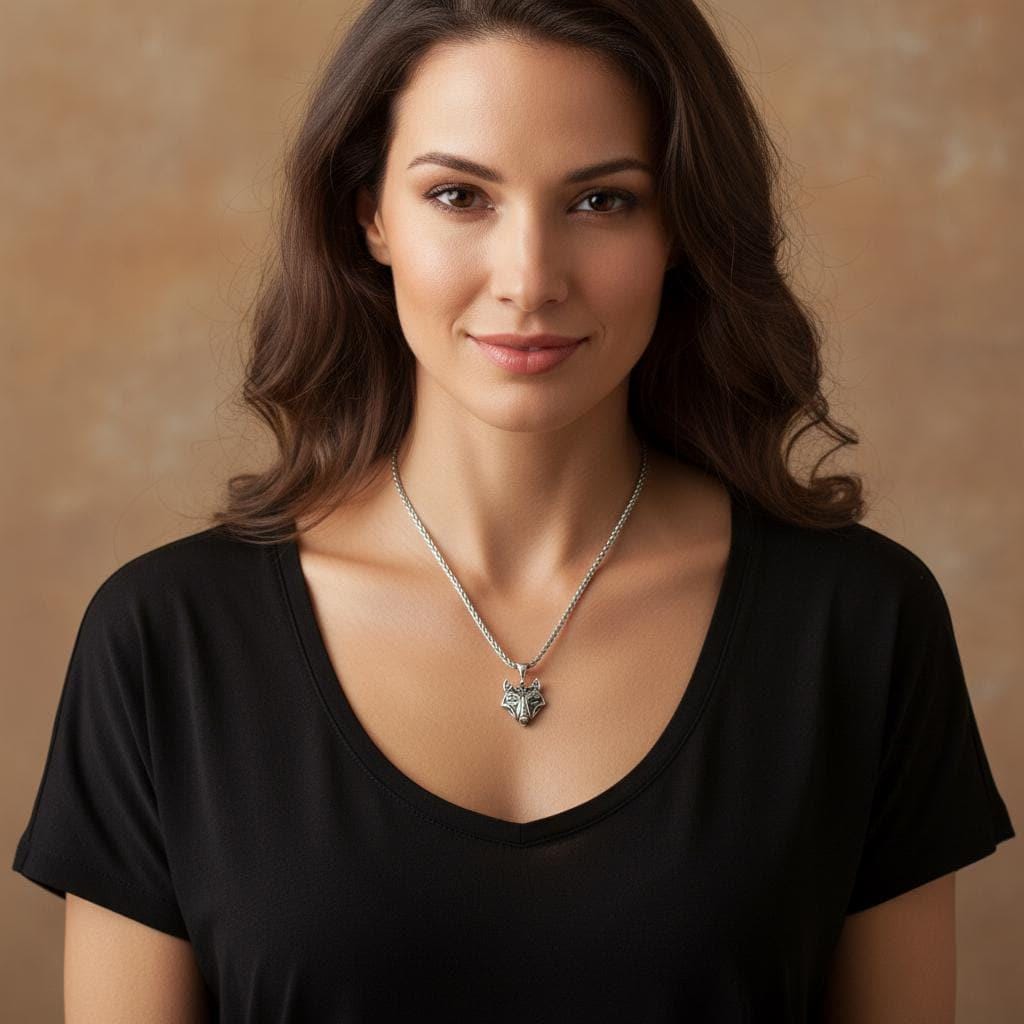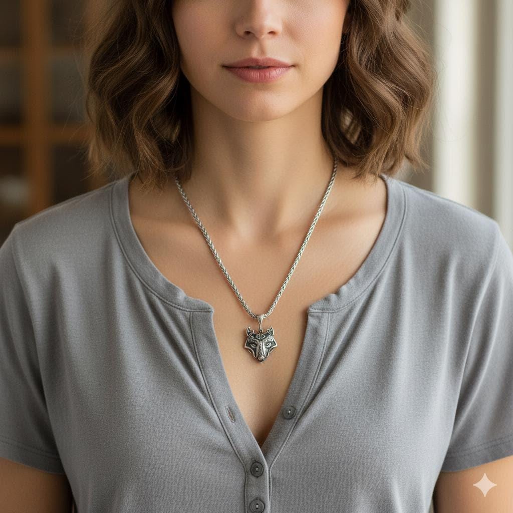 Viking Wolf Head Pendant Necklace, Norse Mythology Jewelry, Celtic Wolf Amulet, Handmade Scandinavian Gift for Men & Women